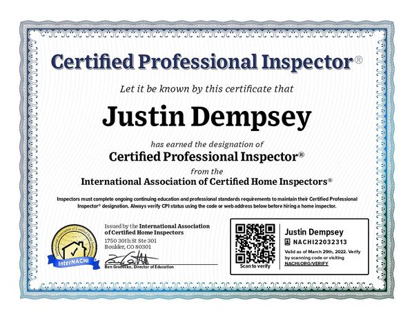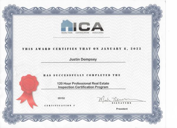 We have completed ICA's Inspector training program (120 Hours of Training) which far exceeds the state minimum (90 Hours of Training) to be eligible to receive state license.