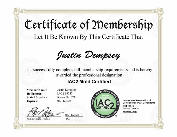 IAC2 (International Association of Certified Indoor Air Consultants) is a prestigious membership/Certification that is above and beyond any other.